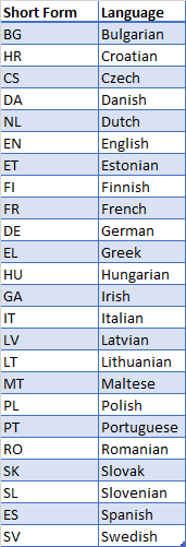 The 24 official languages of the EU: