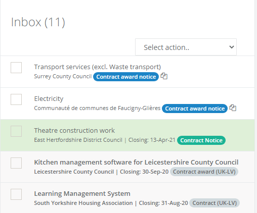 Please note that we only register a notice as having been read when the notice is read inside the Tenderlake web app (as shown in the examples here).